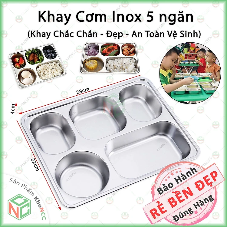 (Bền Bỉ) Khay Cơm Inox 5 Ngăn Tiện Dụng KhoNCC Hàng Chính Hãng - Chống Gỉ An Toàn Sạch Sẽ - Không Vỡ Phù Hợp Cho Cả Trẻ - KLM-KCI5N