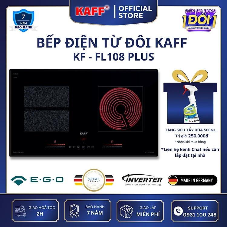 Bếp âm từ hồng ngoại đôi kết hợp nhập khẩu Germany KAFF KF-FL108 Plus - Hàng Chính Hãng