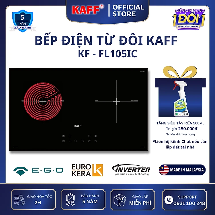 Bếp âm từ hồng ngoại đôi nhập khẩu Malaysia KAFF KF-FL105IC - Hàng chính hãng