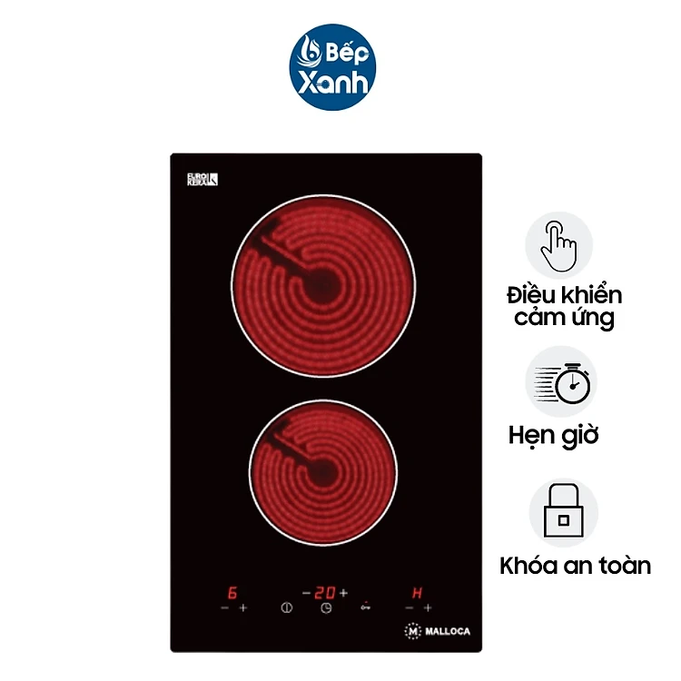 Bếp điện Domino 2 vùng nấu Malloca MDH-02R - Công suất 3000W - Hàng Chính Hãng