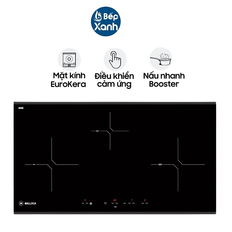 Bếp điện từ 3 vùng nấu Malloca MH-03IRB S - Hàng Chính Hãng