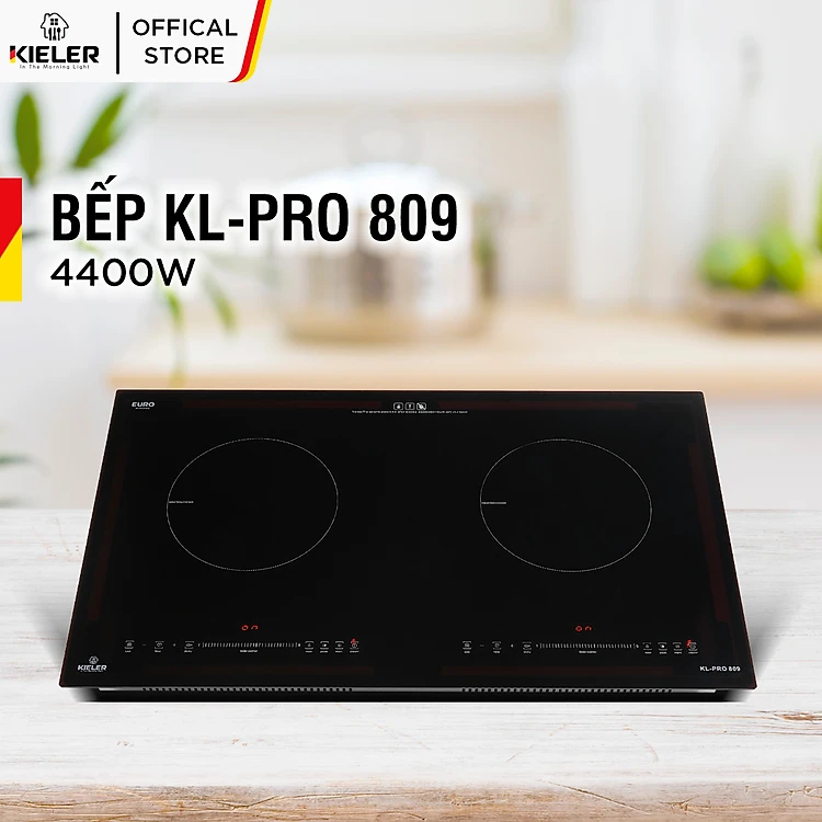 - Tên sản phẩm: Bếp đôi điện từ Kieler KL-Pro 809 mặt kính Euro Kieler Platinum, Bếp điện từ có chế độ cảm ứng chống tràn 4400W
