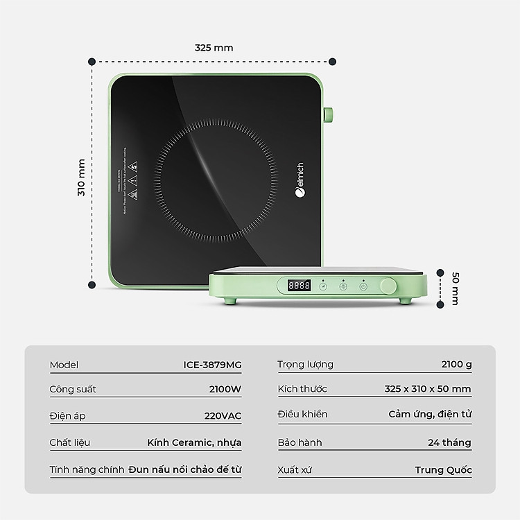 Bếp điện từ đơn Elmich ICE-3879 được thiết kế thông minh và trang bị các tính năng ưu việt