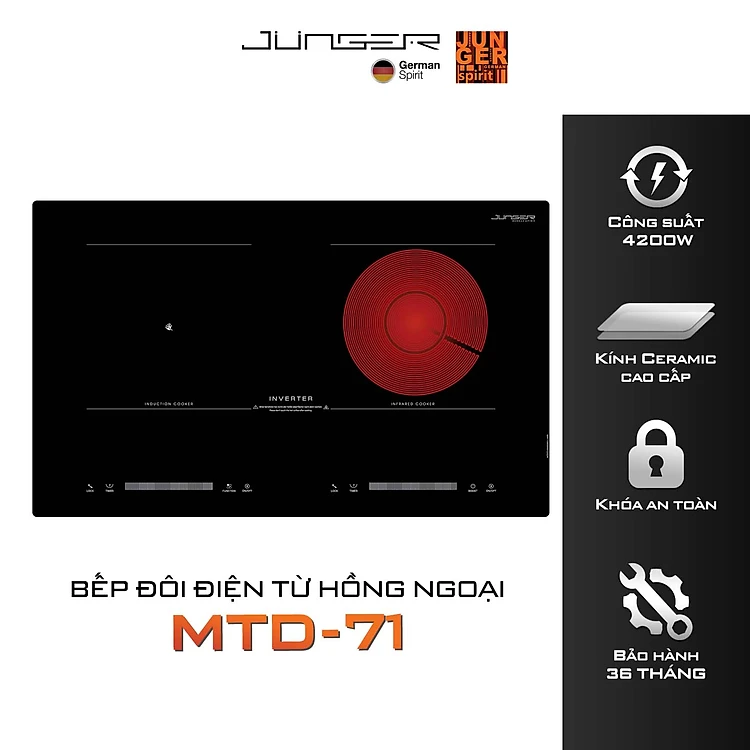 Bếp đôi điện từ hồng ngoại Junger MTD-71 | Công suất 3100W - INVENTER | Bảo hành 36 tháng hàng chính hãng