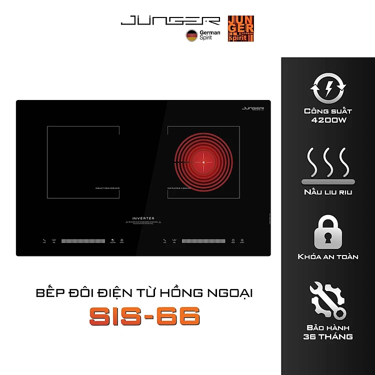 Bếp đôi điện từ hồng ngoại Junger SIS-66 | Công suất 4200W - INVENTER | Bảo hành 3 năm hàng chính hãng