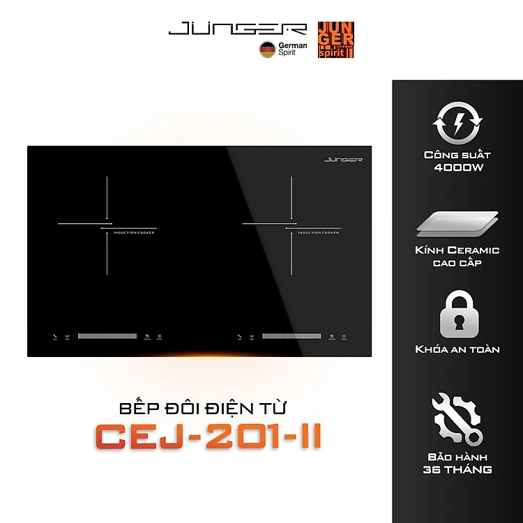 Bếp từ đôi Junger CEJ-201-II 4000W Tích hợp khóa phím an toàn Hàng Chính Hãng Bảo Hành 36 Tháng