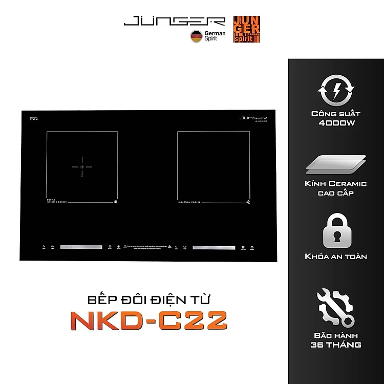 Bếp từ đôi JUNGER NKD-C22 4000W Tích hợp khóa phím an toàn Hàng Chính Hãng Bảo Hành 36 Tháng