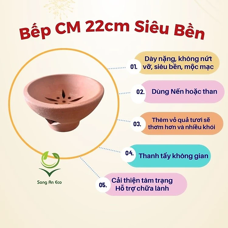 Bếp đốt bồ kết thảo mộc - Bếp đất - Bếp tráng men size từ 9cm đến 22cm các loại