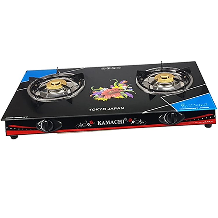 Bếp Ga Đôi Kamachi KM-212 Kiếng Cường Lực Đầu Đốt Mol Siêu Bền Điếu Inox Không Hoen Rỉ-Hàng Chính Hãng