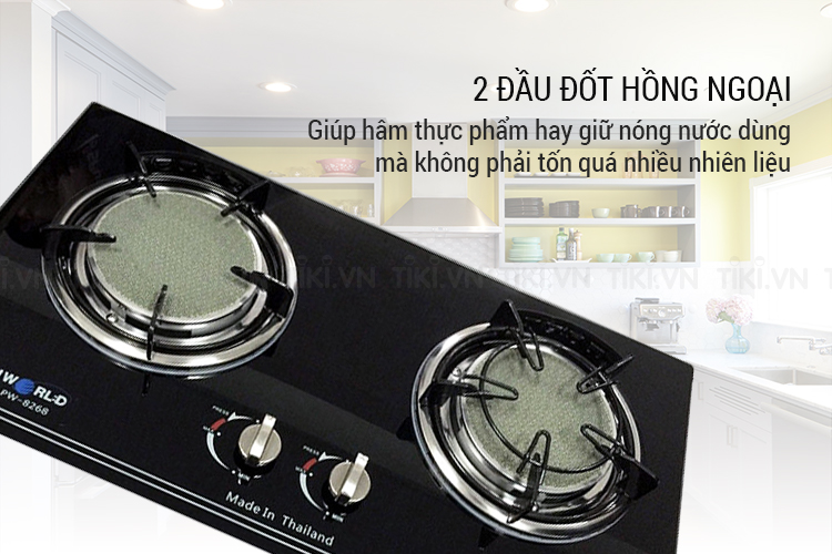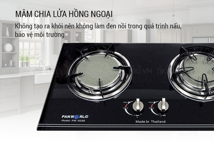 Bếp Gas Âm PANWORLD PW-8268 - Đen được trang bị 2 đầu đốt hồng ngoại có chế độ hâm để dùng với chế độ lửa nhỏ, giúp hâm thực phẩm hay giữ nóng nước dùng mà không phải tốn quá nhiều nhiên liệu.