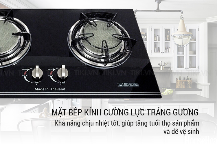 Mặt bếp sử dụng chất liệu kính cường lực tráng gương, có khả năng chịu nhiệt tốt, giúp tăng tuổi thọ sản phẩm và dễ vệ sinh, lau chùi. Nhờ đó, bề mặt bếp luôn giữ được độ sáng đẹp trong thời gian sử dụng.