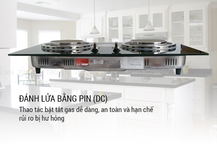 Bếp có hệ thống đánh lửa bằng cách sử dụng pin điện tử DC 1.5V kết hợp với nút vặn nằm phía trên của mặt kính bếp giúp thực hiện các thao tác bật tắt gas dễ dàng, an toàn và hạn chế rủi ro bị hư hỏng, đồng thời cho hiệu quả nấu chín các loại thực phẩm nhanh đều hơn, mang lại những món ăn thơm ngon, hấp dẫn phục vụ cho các nhu cầu của bạn và người thân.