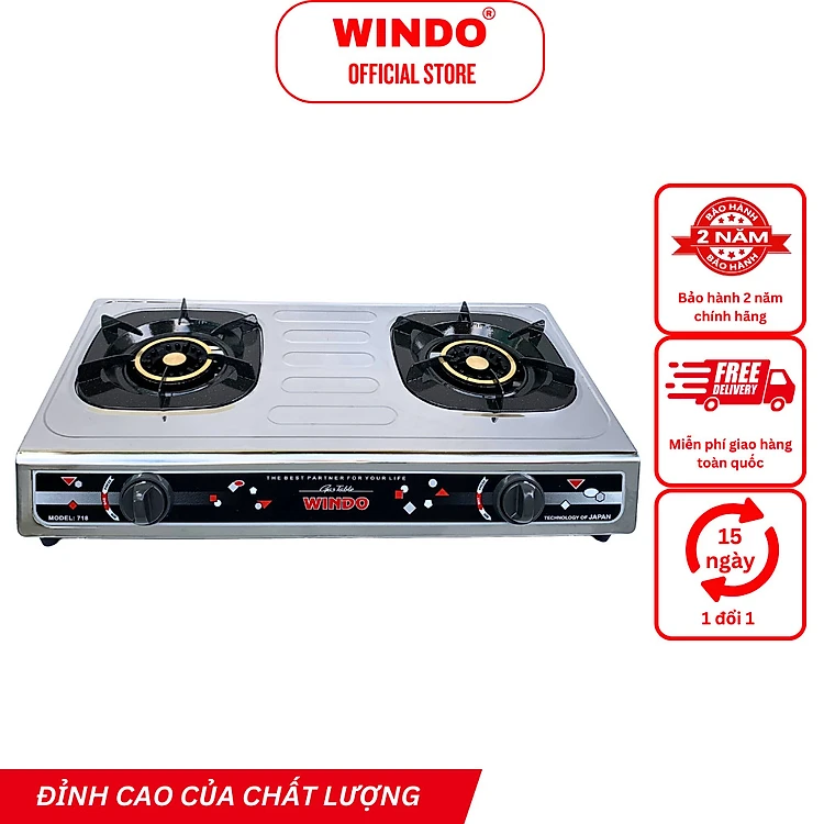 Bếp Gas Đôi Để Bàn Mặt Inox WINDO - 718 PHI 100 | Tiết kiệm gas | Bảo hành 24 tháng- Hàng Chính Hãng