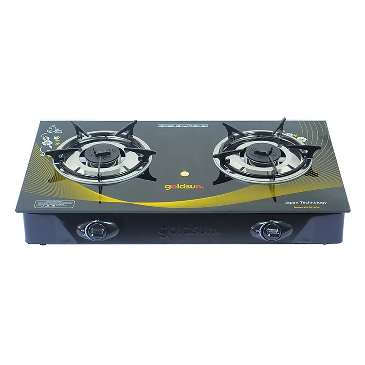 Bếp Gas Đôi Goldsun Công Nghệ Nhật Bản GS-2016GB với kiểu dáng chữ nhật hiện đại có hoa văn, phù hợp với nhiều phong cách nội thất. Toàn thân bếp màu đen bóng, in logo hãng, sang trọng. Kiểu dáng nhỏ gọn giúp tiết kiệm không gian vừa giúp cho căn bếp của bạn thêm sang trọng.