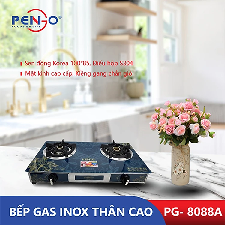 Bếp gas đôi mặt kính Kiềng Gang Pengo PG-8088A( Hàng chính hãng)