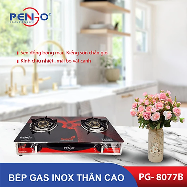 Bếp gas đôi mặt kính Pengo PG-8077B( Hàng chính hãng)
