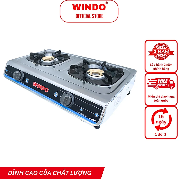 Bếp Gas Đôi WINDO - 618 Điếu Gang Đơn Mặt Inox -Bếp gas đôi 6 tấc điếu gang - Tiết kiệm gas- Hàng chính hãng
