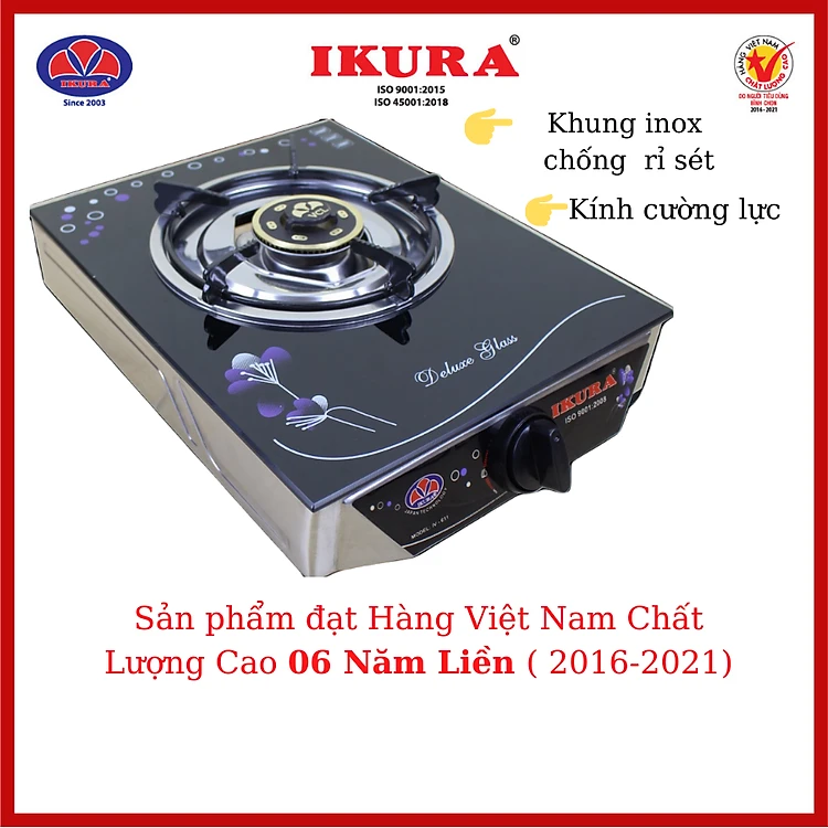 Bếp Gas Đơn Cao Cấp IKURA (IV 611) - Đầu đốt bằng đồng - Hàng Chính Hãng
