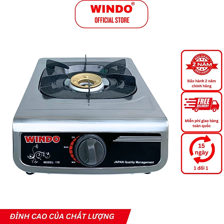 Bếp Gas Đơn Mặt Inox WINDO - 118 ĐG | Bếp gas đơn để bàn điếu gang tiết kiệm gas- Hàng chính hãng