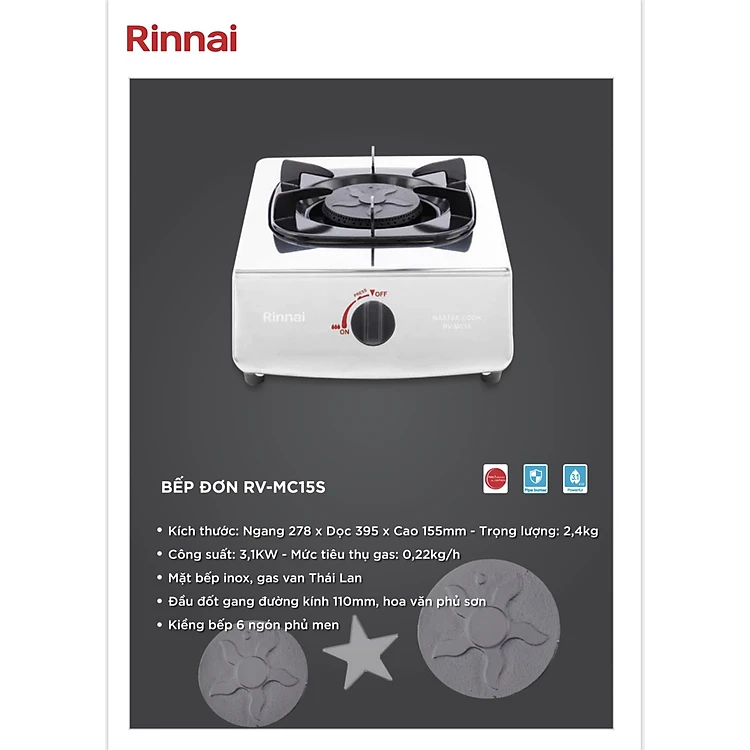 Bếp gas đơn Rinnai RV-MC15G - Hàng Chính Hãng