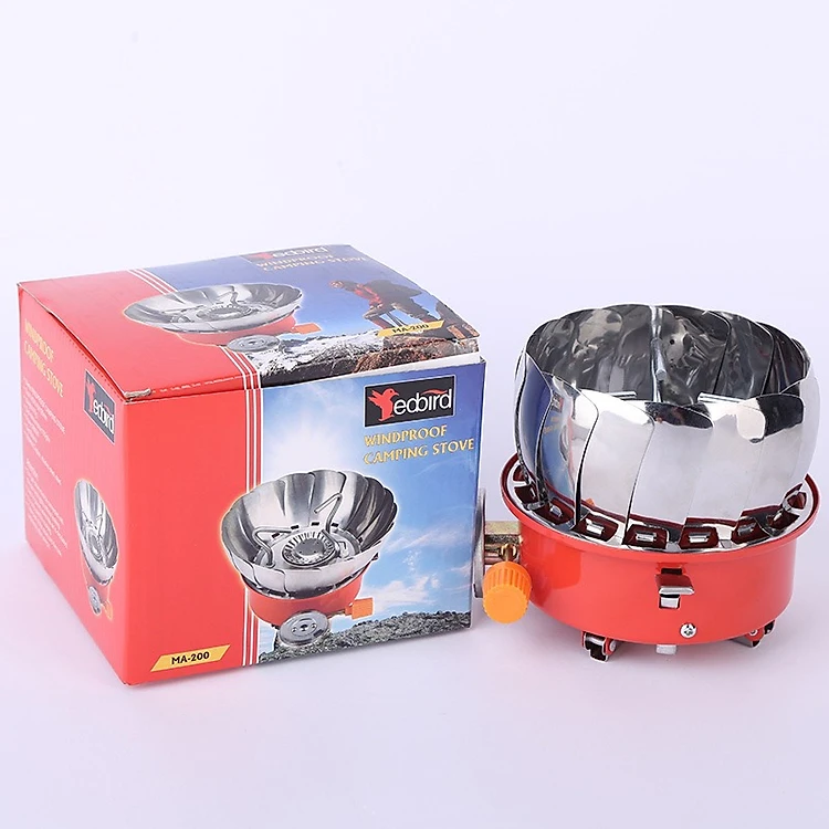 Bếp gas du lịch dã ngoại mini gấp gọn, có lồng chắn gió, đồng hành cho mọi chuyến đi