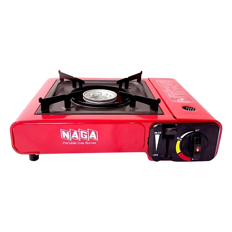 - Bếp Gas Du Lịch Mini Thân Sơn Tĩnh Điện Naga với thân bếp được thiết kế hình hộp có phủ sơn màu bắt mắt, nhỏ gọn, dễ vệ sinh sau khi sử dụng.