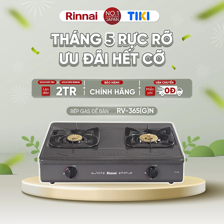 Bếp gas dương Rinnai RV-365(G)N mặt bếp men và kiềng bếp men - Hàng chính hãng.