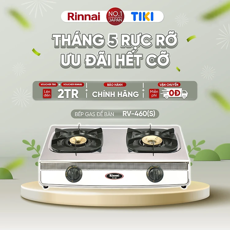 Bếp gas dương Rinnai RV-460(S) mặt bếp inox và kiềng bếp men - Hàng chính hãng.