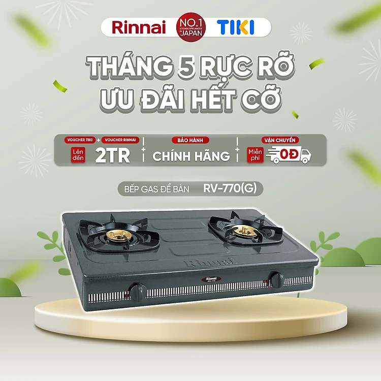 Bếp gas dương Rinnai RV-770(G) mặt bếp men và kiềng bếp men - Hàng chính hãng.