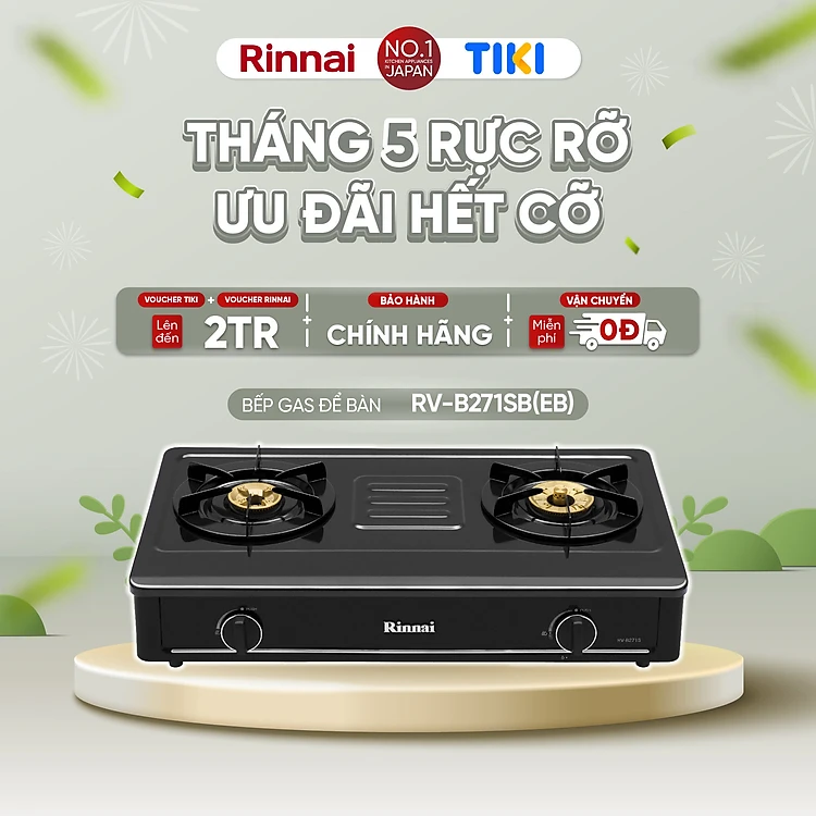 Bếp gas dương Rinnai RV-B271SB(EB) mặt bếp men và kiềng bếp men - Hàng chính hãng.