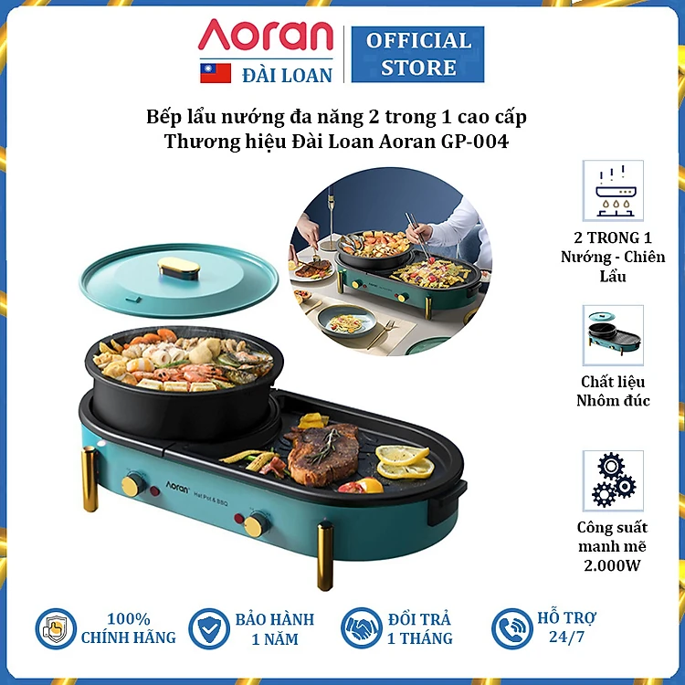 Bếp lẩu nướng đa năng 2 trong 1 cao cấp Aoran GP-004 - Công suất 2000W - Hàng Chính Hãng