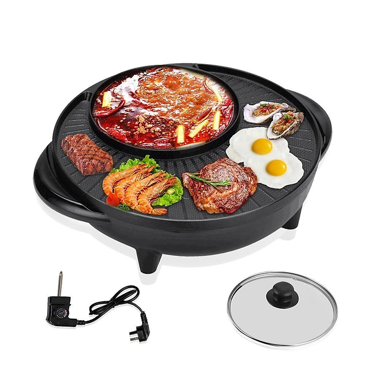 Bếp lẩu nướng điện đa năng 2 in 1 OSAKA - Nồi lẩu nướng 2 ngăn Hàn Quốc Chất Liệu Gang Chống Dính, Công Suất 1700W