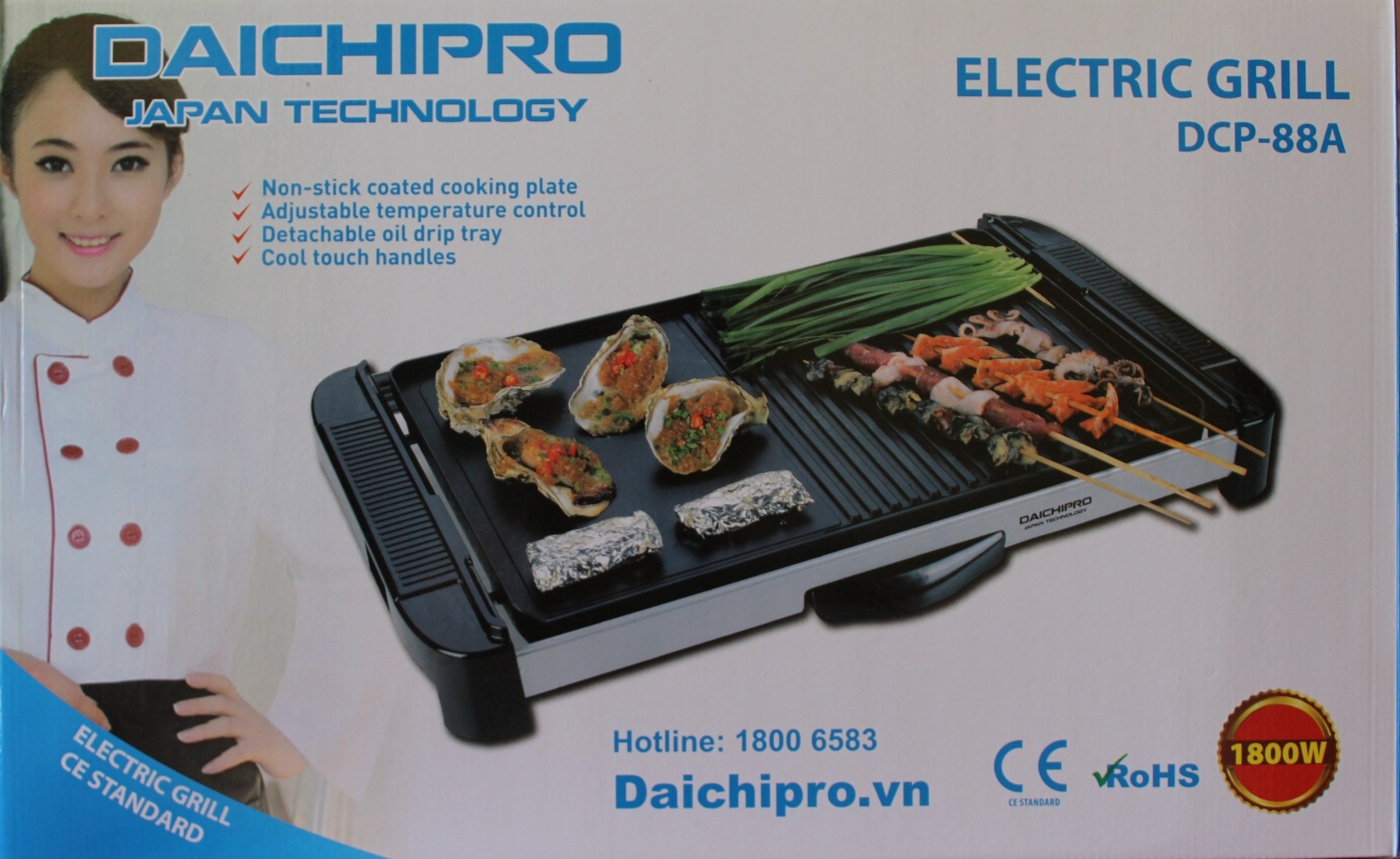 Bếp Mâm Vỉ Nướng Điện Cỡ Lớn (60x35x7,5cm) Daichipro DCP-88A (1800W) - Chính Hãng