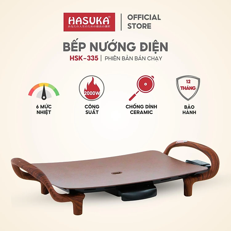 Bếp nướng điện HASUKA HSK-335 công suất 2000W- Cảm biến nhiệt thông minh, tự ngắt khi quá tải - HÀNG CHÍNH HÃNG