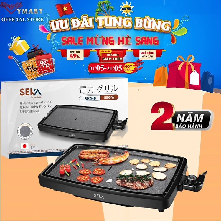 Bếp Nướng Điện Không Khói Cao Cấp Seka SK540 Công Suất 1800W, Vỉ Nướng Nhôm Phủ Chống Dính - Hàng Chính Hãng