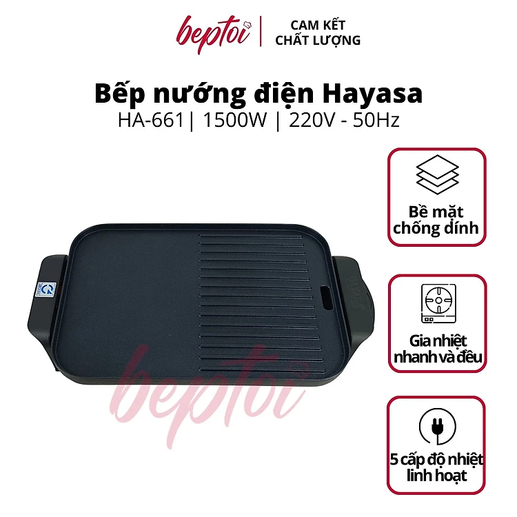 Bếp nướng điện không khói Hayasa, bếp nướng đa năng công suất 1500W HA-661 - Hàng chính hãng
