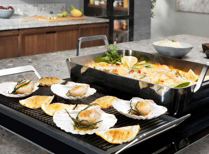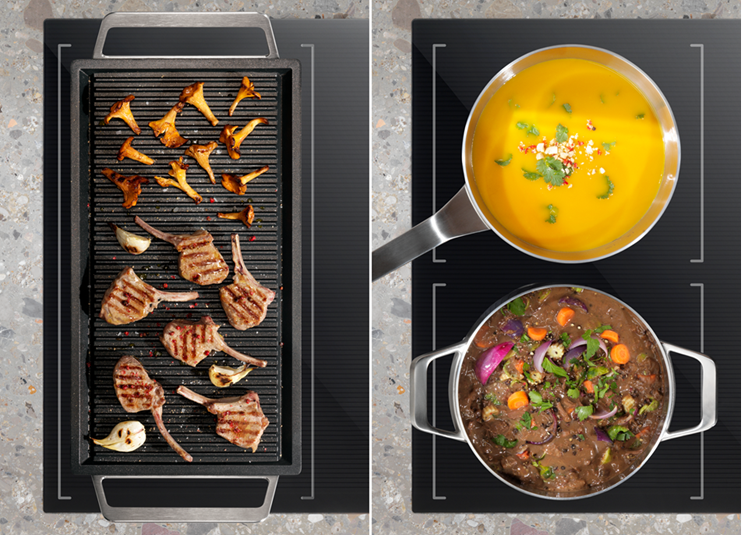 Tính năng kết nối vùng nấu Bridge có thể hoạt động ở cả 2 bên của bếp, cho phép tạo ra 2 vùng nấu lớn.