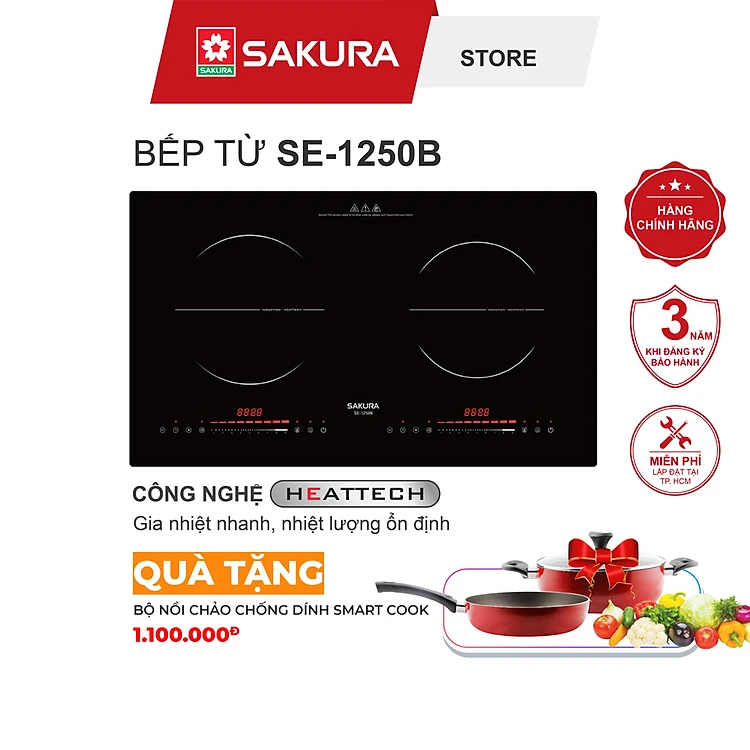 Bếp Từ Đôi SAKURA SE-1250B Công Nghệ HEATTECH Hàng Chính Hãng