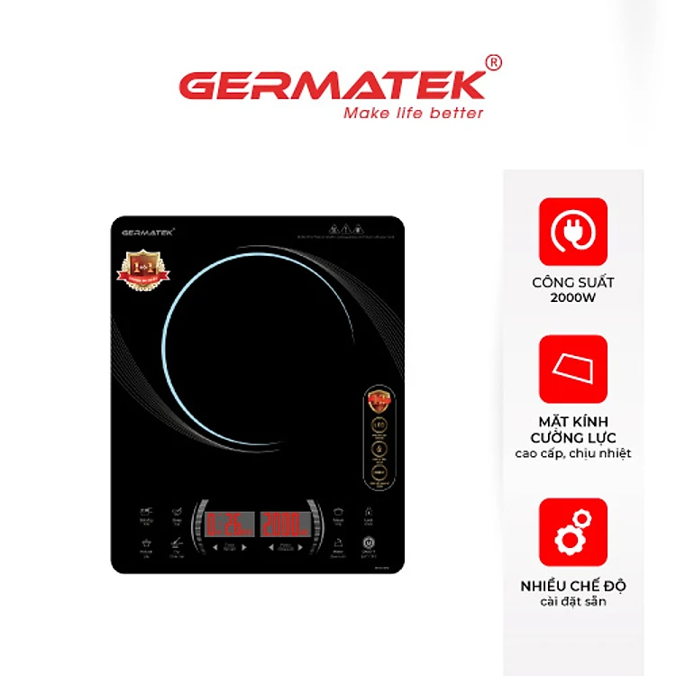 Bếp từ đơn cao cấp Germatek DE-ICF51E (BH 12 tháng) tặng kèm nồi lẩu inox Vicenza - Hàng chính hãng
