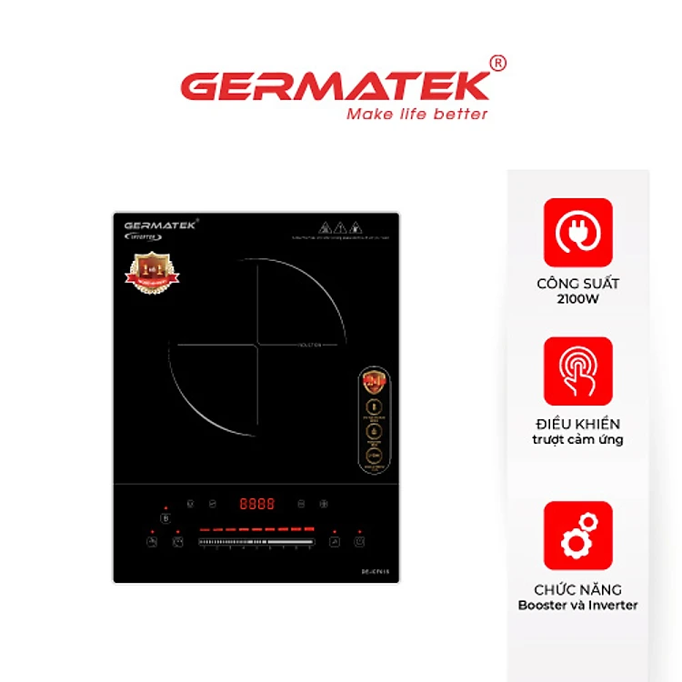 Bếp từ đơn cao cấp Germatek DE-ICF61S (BH 24 tháng) tặng kèm nồi lẩu inox Vicenza -Hàng chính hãng