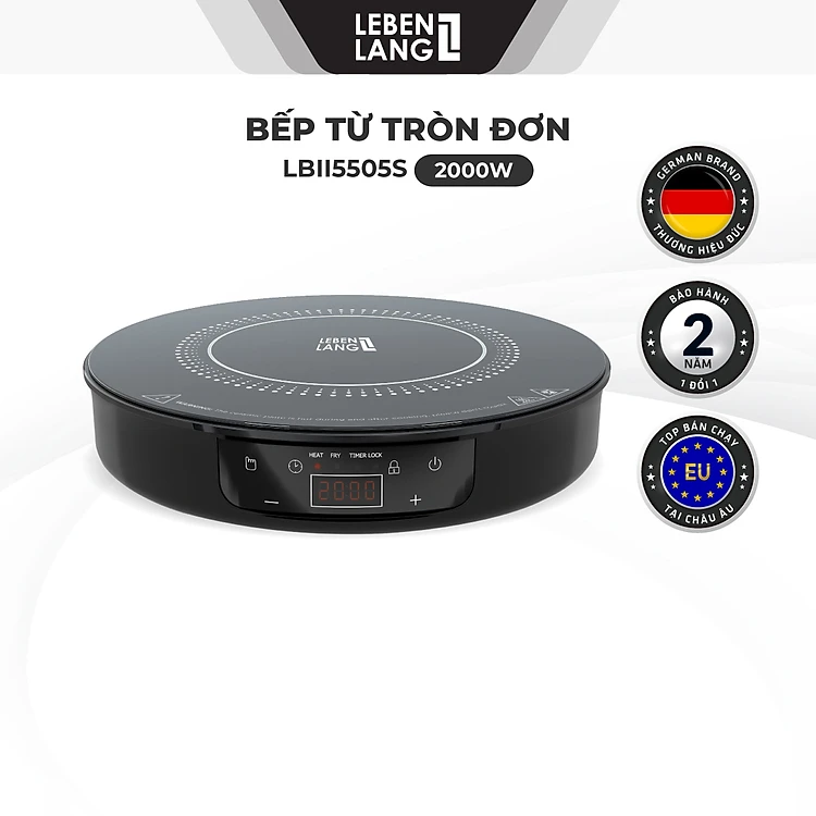 Bếp từ đơn LEBENLANG LBII5505S mặt kính chịu lực, có chức năng hẹn giờ, cài đặt thời gian nấu, công suất 2000W - hàng chính hãng