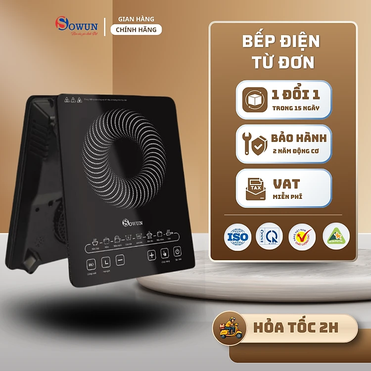 Bếp điện từ đơn Sowun SW161S, mặt kính Ceramic chịu được nhiệt độ cao, công suất lớn 2000W