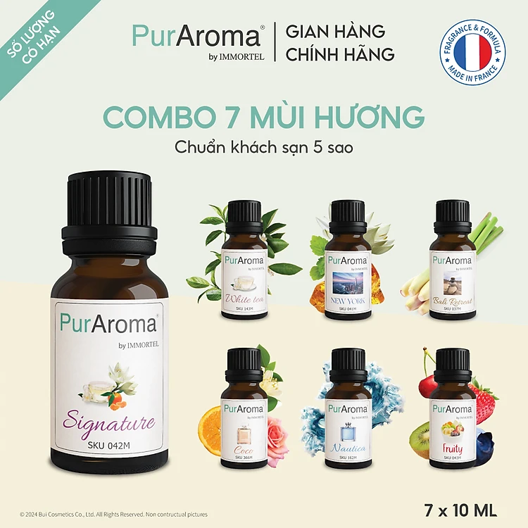 [Best Seller] Combo 7 Tinh Dầu Thiên Nhiên Nguyên Chất PurAroma by IMMORTEL 10mL Chính Hãng Pháp