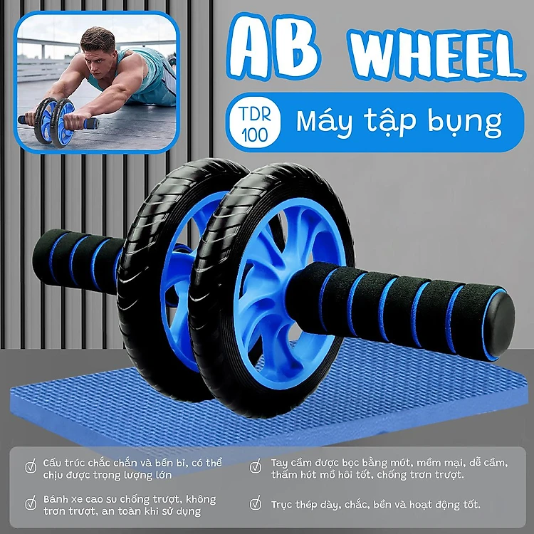 BG Con Lăn Tập Bụng 2 Bánh TDR100 + Thảm Lót ( hàng nhập khẩu)