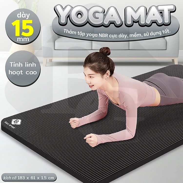 BG Thảm tập Yoga,GYM chuyên dụng dày 15mm NBR nguyên khối, độ đài hồi tốt, chống lún, Chống trơn trượt, độ bám cao, ngăn ngừa hôi và ẩm mốc (hàng nhập khẩu)