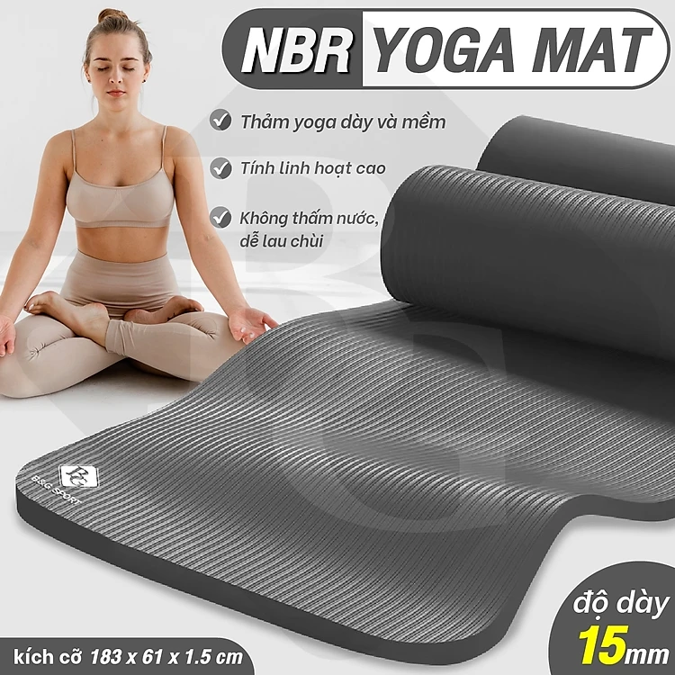 BG Thảm tập Yoga,GYM chuyên dụng dày 15mm NBR nguyên khối, độ đài hồi tốt, chống lún, Chống trơn trượt, độ bám cao, ngăn ngừa hôi và ẩm mốc (hàng nhập khẩu)