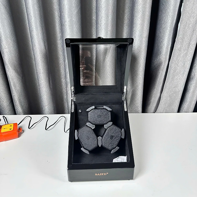 [BH 2 năm động cơ] Hộp Xoay 3 đồng hồ gỗ Saike nền nỉ