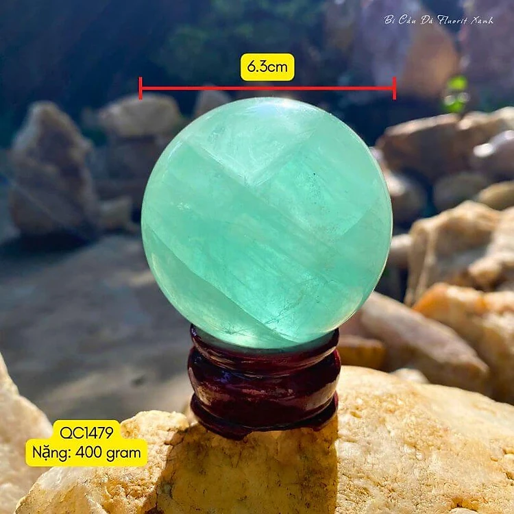 Bi Cầu Đá Fluorite Xanh Tự Nhiên NHASAN Quả Cầu Phong Thủy Thu Hút Năng Lượng Tích Cực, Tăng Tập Trung