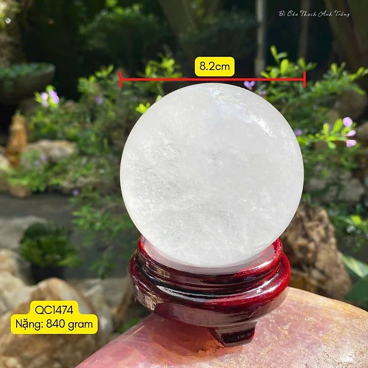 Bi Cầu Thạch Anh Trắng Tự Nhiên Cao Cấp NHASAN Tăng Cường Sinh Khí, Tụ Tài Lộc