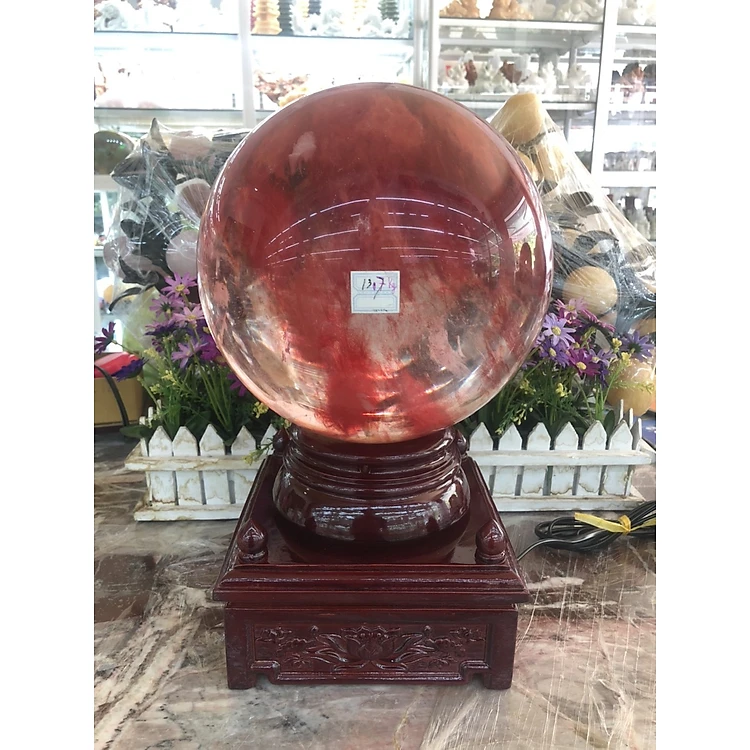 Kích thước: Đế gỗ xoay ( Dài 19cm x Rộng 19cm x Cao 14cm ), Cầu đỏ có đường kính 23cm